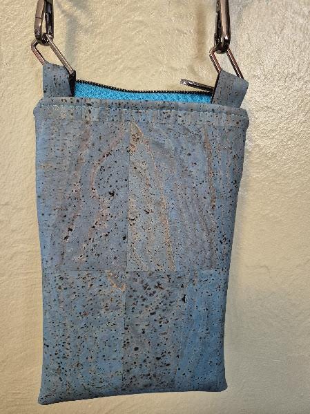 This beautiful teal cork crossbody bag is the perfect everyday purse. The lightweight design makes it comfortable for daily wear.