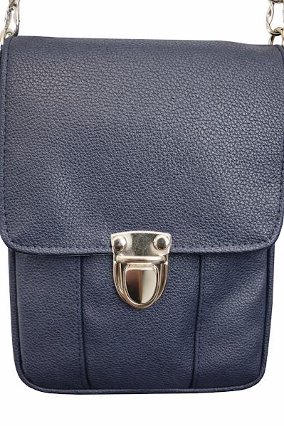 • Soft faux leather exterior in navy blue